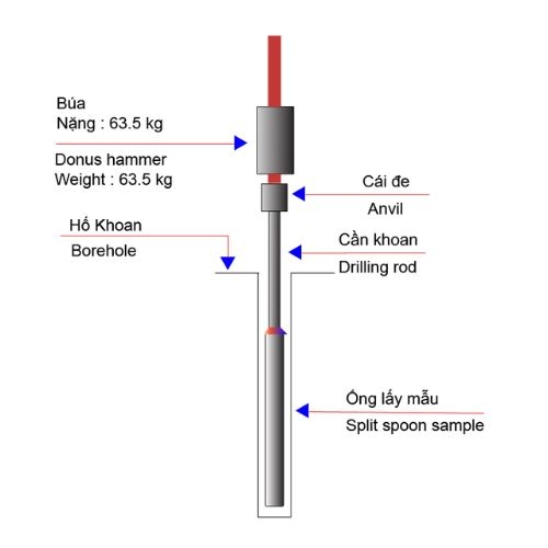 - Tiến hành lấy mẫu: Đưa bộ lấy mẫu xuống độ sâu cần thiết và thực hiện quá trình xuyên tiêu chuẩn (SPT) theo quy trình.