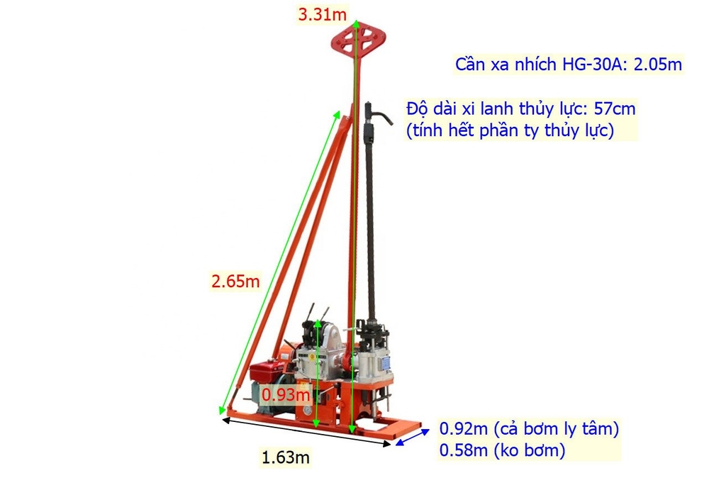 Máy khoan địa kỹ thuật HG-30A – Khoan nông 50m, siêu nhẹ 400kg, kéo tay vào ngõ hẹp