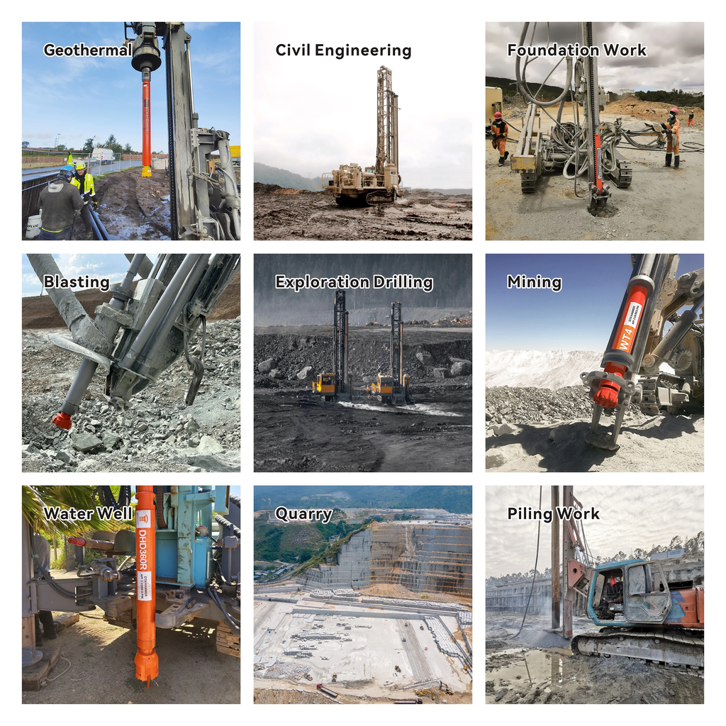 Công nghệ DTH tiên tiến: Truyền năng lượng mạnh mẽ, tăng tốc độ khoan và khả năng xuyên thủng các lớp đá cứng.