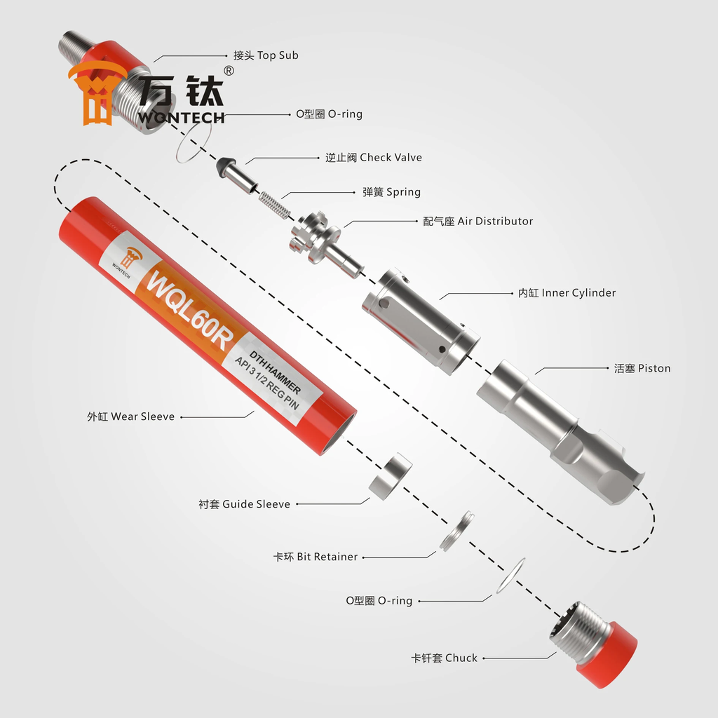 - Tối ưu hóa hiệu suất: Búa khoan Wontech DTH cung cấp lực tác động mạnh mẽ, cho phép khoan nhanh chóng và hiệu quả qua nhiều thành tạo đá khác nhau.