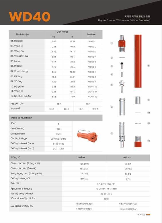 Wontech là một tên tuổi đáng tin cậy trong lĩnh vực thiết bị khoan, nổi tiếng về chất lượng, sự đổi mới và hiệu suất. Búa khoan đá DTH DHD340 là minh chứng cho cam kết của Wontech trong việc cung cấp các giải pháp khoan đáng tin cậy và hiệu quả.